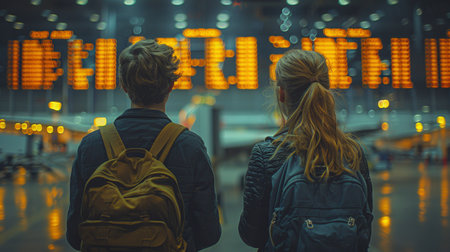 Passengers looking at the flight information board and checking their flight in international airport