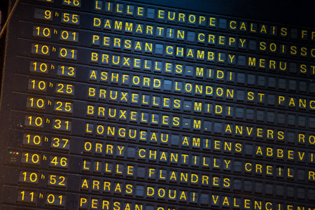 Departure board on the train station in Paris, France