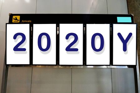 Happy new year 2020 on Advertisement billboard at airport .