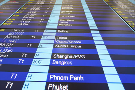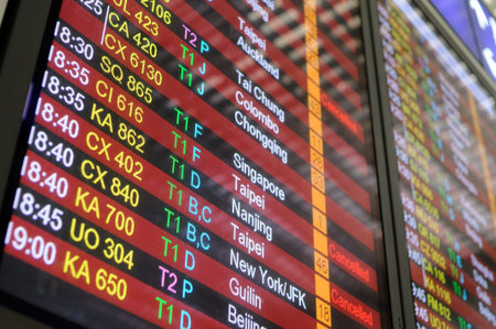 Flight schedule information board in Hong Kong International airport