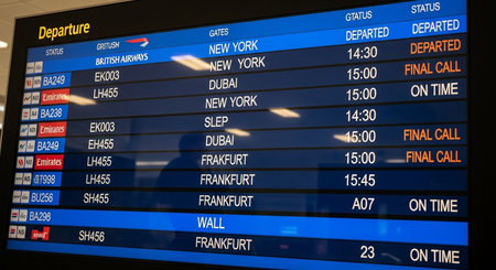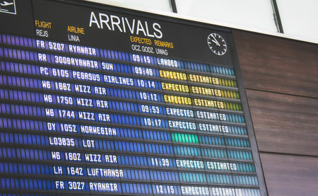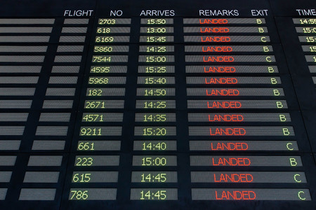 Landing time, Flight information board at internation airport