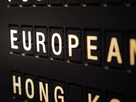 Signs name of European on black directory board. Used for For currency exchange, airport, business, finance or travel concept, Signs and symbols.