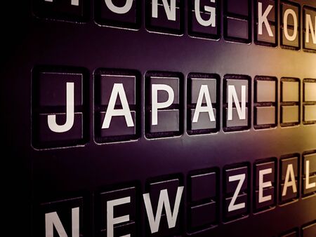 Signs name of Japan country on black directory board. Used for For currency exchange, airport, business, finance or travel concept, Signs and symbols.