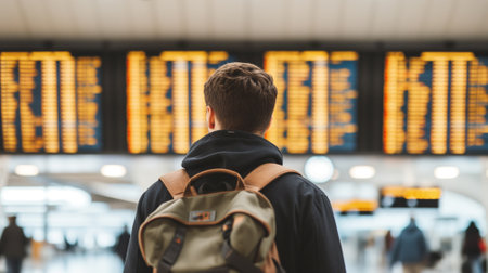 Young Man Looking At Sign In Airport