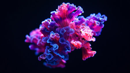 close-up of coral polyps capturing plankton in the dark, created with generative ai
