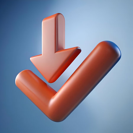 A shiny download arrow with a subtle shadow effect on a soft green backdrop