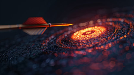 Close up view of dart arrow aimed at glowing target, symbolizing focus and precision. vibrant colors and intricate details create captivating visual experience
