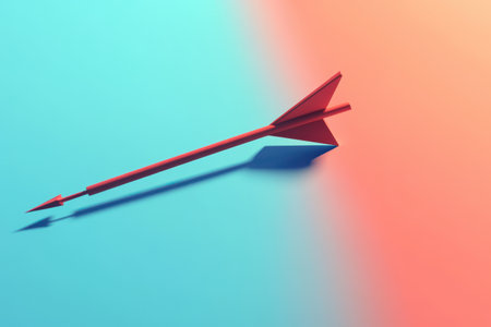A stylized red arrow fletched with white feathers captured in a dramatic, cinematic style, resting h