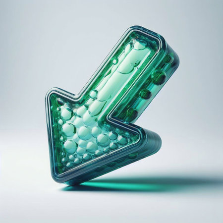 This graphic features a sleek green and blue dual arrow icon, symbolizing upward and downward movement, ideal for various digital interfaces and applications.