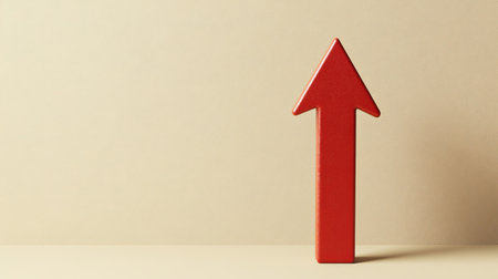 A striking red arrow indicating upward movement set against a soft beige background, representing themes of growth and success in various contexts. Ideal for business and motivation concepts.