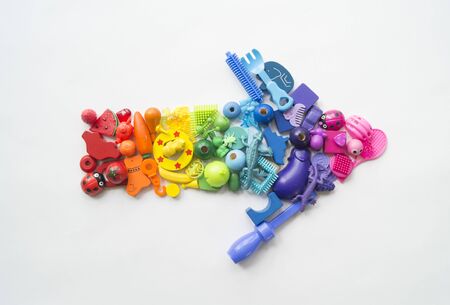Children's toys rainbow. Letters and symbols from toys. White background.