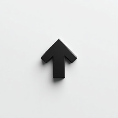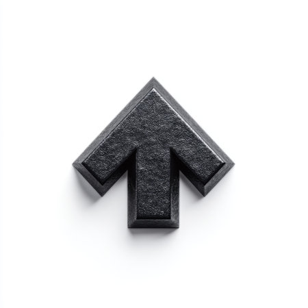 This image features a glossy black arrow pointing upward, symbolizing growth and progress against a clean white backdrop. Ideal for concepts of motivation and direction.