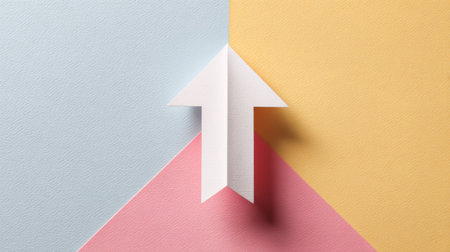 Symbolic upward progression represented by a white arrow on a pastel colored background aimed at success and growth concepts