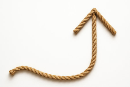 A growth arrow laid out of rope on a light background. Space for text