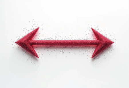 Two bright red arrows made of sparkling glitter point in opposite directions, surrounded by a sprinkle of loose glitter. This playful creation captures attention with its vibrant colors.
