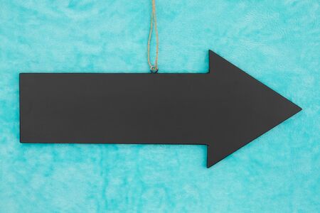 Blank hanging arrow chalkboard sign blue plush material with copy space for your message