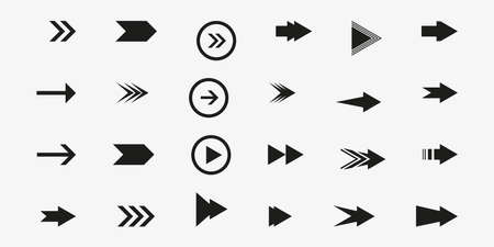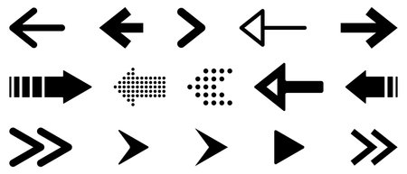 Set of black arrow icons for various purposes. Includes arrow vectors in different styles and designs. Ideal for use in presentations, websites or graphic design projects.