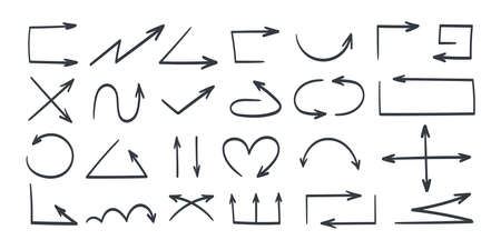 Hand drawn set of different Arrow. Different black directional icons, vector illustration collection for web design, mobile apps, interface and other design, Each on a separate layer.