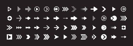 Arrow symbols big set of different shapes styles and concepts, cursors for icons or logo creation, single color monochrome logotypes.