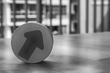 High-contrast photo of a minimalist white arrow pointing left on a textured gray surface