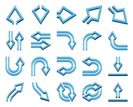 Arrows, directions and indicators icons set on white background.