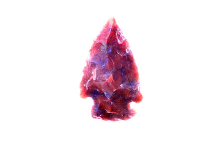 Ancient Prehistoric primitive stone arrowhead isolated over white