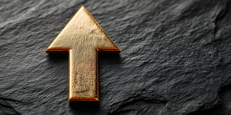 Golden Arrow Pointing Upward on Dark Stone Surface Symbolizing Progress, Growth, and Success