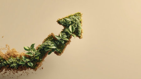 Handcrafted paper arrows and foliage on a textured background, symbolizing growth and direction in a business concept. Generative AI