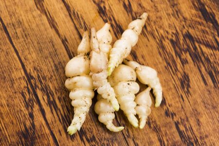 Japanese crosne Stachys affinis tubers rhizome root vegetable closeup