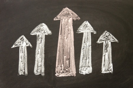 A single arrow breaks upward among others, symbolizing a growth strategy aimed at success in business. This marks progress and direction.