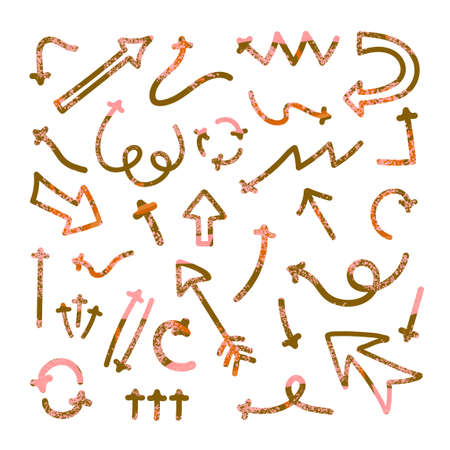 Vector colorful abstract set with illustrations of hand drawn arrows and direction pointers isolated on white background. Elemets for your design for card, poster, packaging paper, t-shirts print