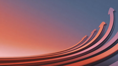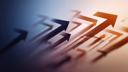 This abstract illustration features arrows pointing upward, symbolizing growth and success. The modern design showcases vibrant colors, representing progress and motivation. Perfect for themes of business, strategy, and development.