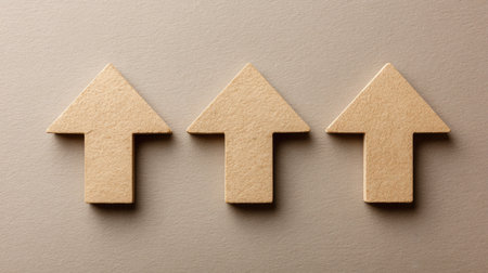 Three simple upward arrows made of a soft material arranged on a beige background highlight themes of direction and growth in a minimalist design.