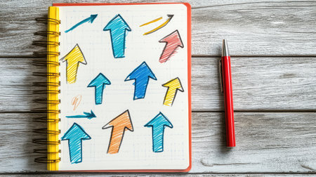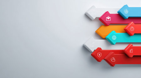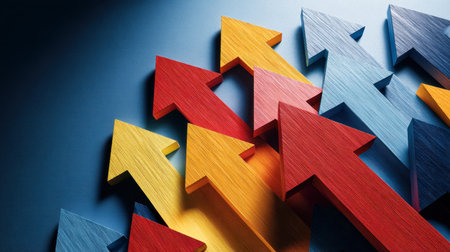 Colorful Upward Arrows Cityscape Illustrating Growth, Progress, and Positive Momentum for Business, Economy, and Innovation