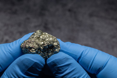pure gold ore found in the mine, dark background.