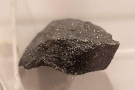 Magnetite black collection stone on display (selective focus).