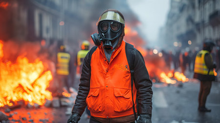 Urban turmoil, street riots civil unrest and societal tensions, chaos and intensity of public protest and demonstration in the heart of the city