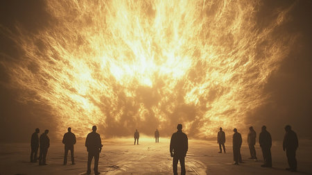 Enigmatic Figures Enveloped by Enormous Blaze: ar 3:2