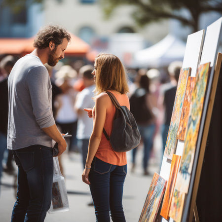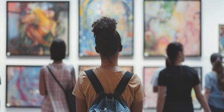 Visitors engaging with art in a vibrant gallery setting, appreciating creative masterpieces