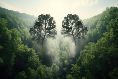 Lung shaped forest aerial viewpoint Signifies nature protection clean air CO2 reduction