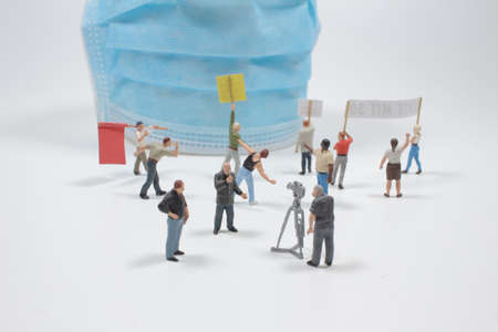 the mini figure anti-mask and anti-lockdown protesters stage