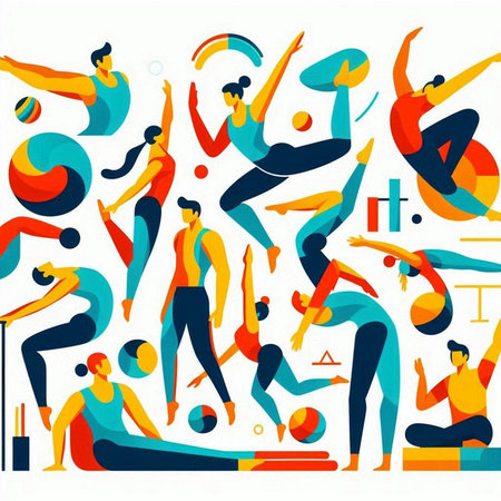 Group of people doing gymnastics, vector illustration. Flat style.