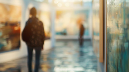 Generative AI : blurred people in art gallery abstract background