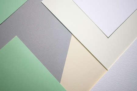 Abstract background from sheets of white, gray and green paper. background with geometric shapes. Thick paper of different colors top view. Abstract paper - colorful background, creative design