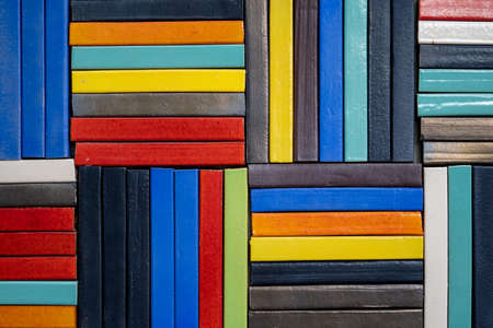 Colorful chalk crayons for drawing on a blackboard and on asphalt. Top view