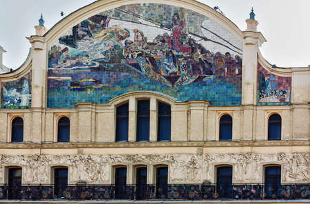 Moscow, Russia - July 14, 2010: detail of hotel Metropol with mosaic with painting of Vrubel, beginning of XX century.