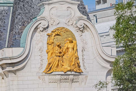 VIENNA, AUSTRIA September 7, 2018: Decorative relief on the French Embassy building located at Schwarzenbergplatz.