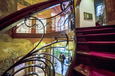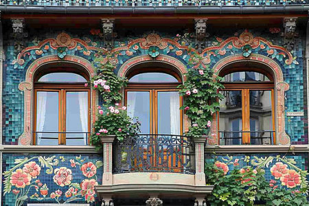 A chic Art Nouveau house with a beautiful wrought-iron grille and elegant curves of architectural forms. France