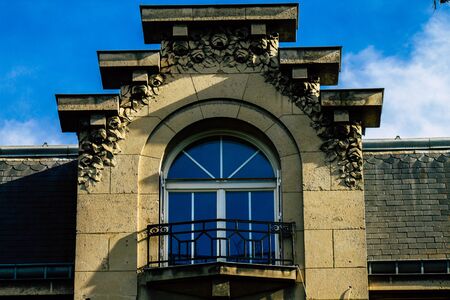 Reims France October 26, 2019 View of windows of a building in the street of Reims in the afternoon