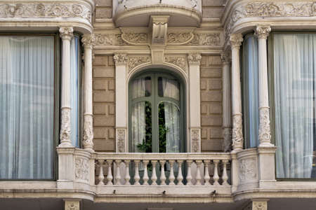 BARCELONA, SPAIN - MAY 16, 2017: Details of the one of the typical old buildings in modern style in the historical center of Barcelona.